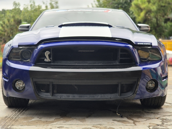 전면에 코브라 앰블런과 범퍼 양쪽에 위치한 둥근 안개등.